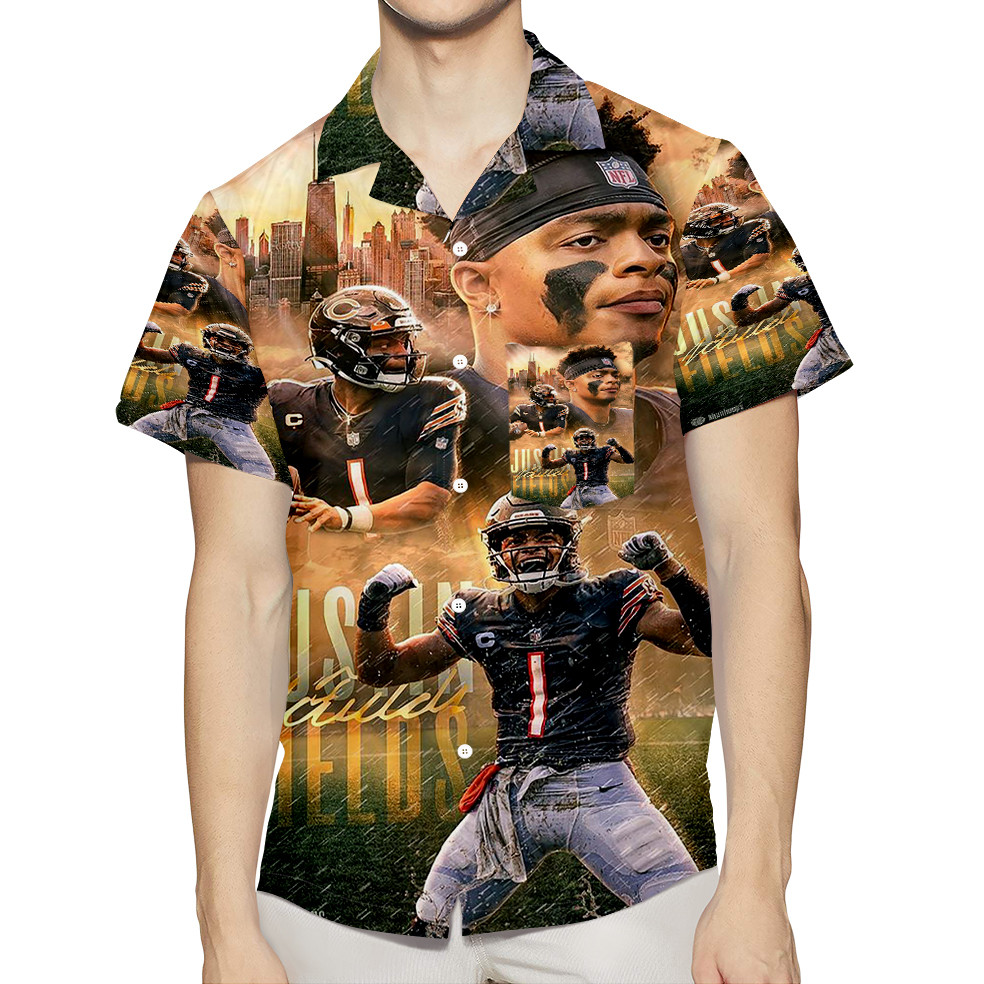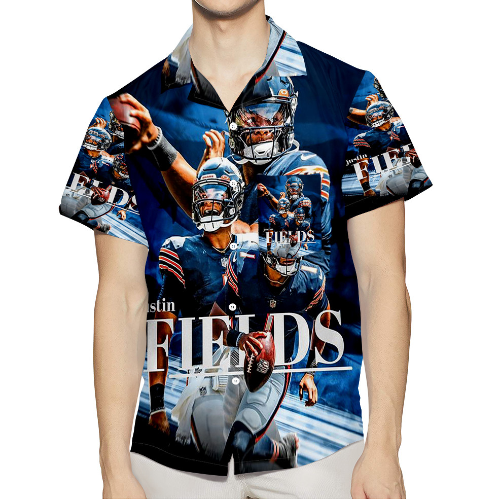 Chicago Bears Justin Fields5 3D All Over Print Summer Beach Hawaiian Shirt With Pocket