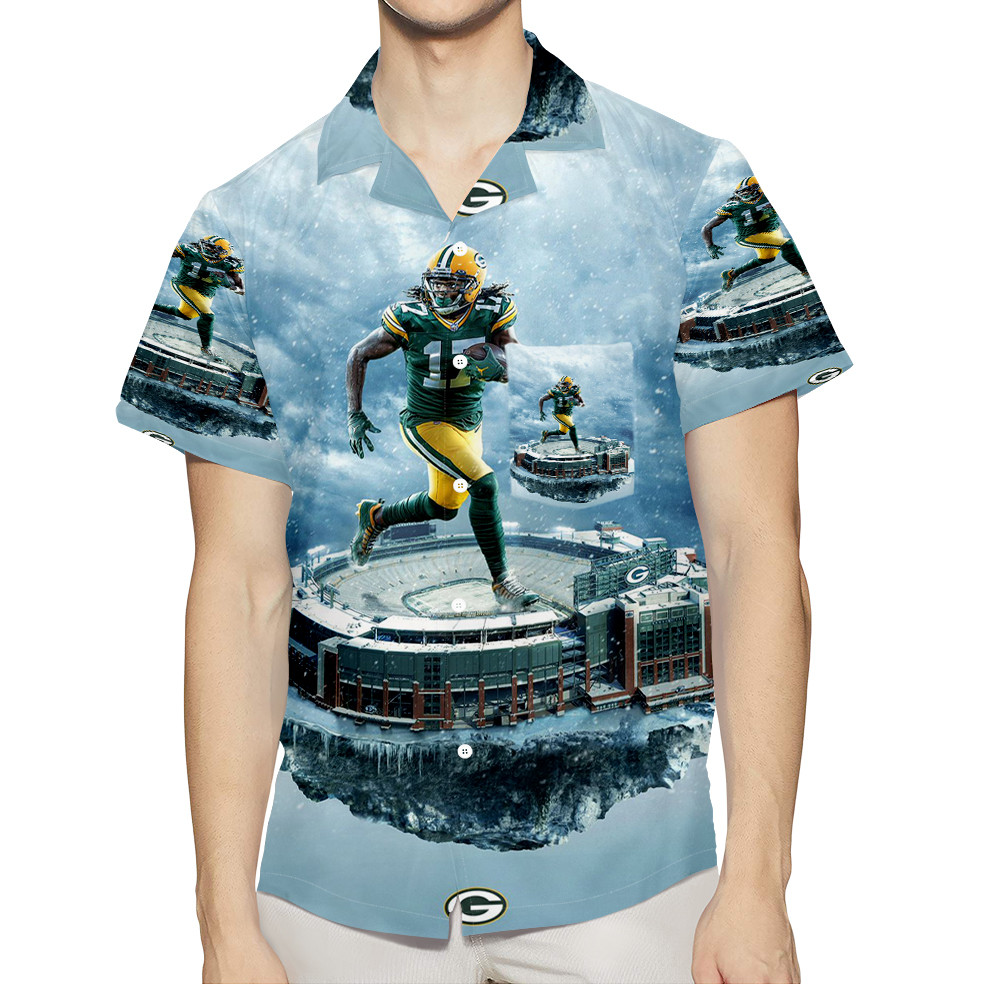 Green Bay Packers Davante Adams no17 v6 3D All Over Print Summer Beach Hawaiian Shirt With Pocket