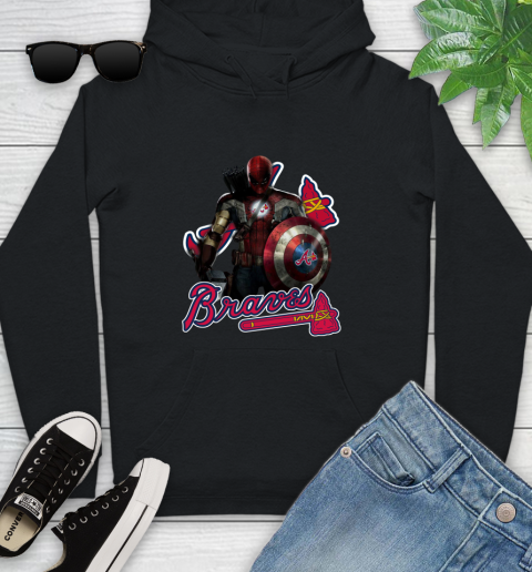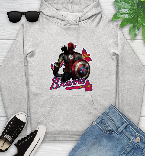 MLB Captain America Thor Spider Man Hawkeye Avengers Endgame Baseball Atlanta Braves Youth Hoodie