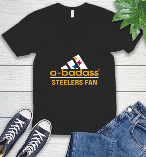 NFL A Badass Pittsburgh Steelers Fan Adidas Football Sports V-Neck T-Shirt