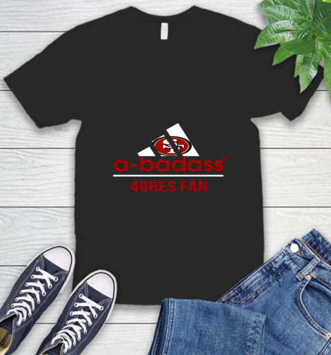 NFL A Badass San Francisco 49ers Fan Adidas Football Sports V-Neck T-Shirt