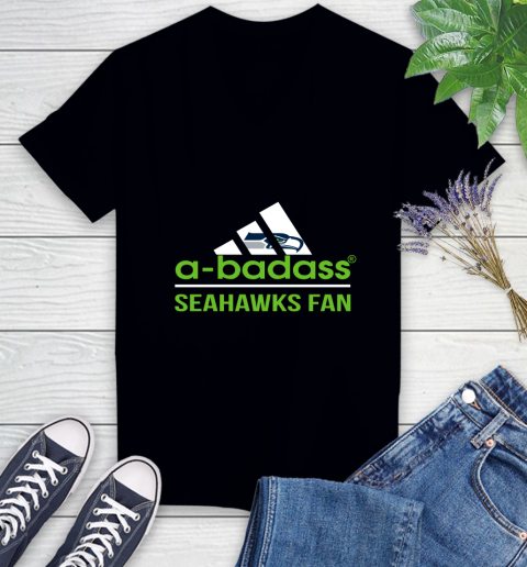 NFL A Badass Seattle Seahawks Fan Adidas Football Sports Women’s V-Neck T-Shirt