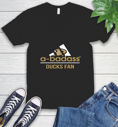 NHL A Badass Anaheim Ducks Fan Adidas Hockey Sports V-Neck T-Shirt