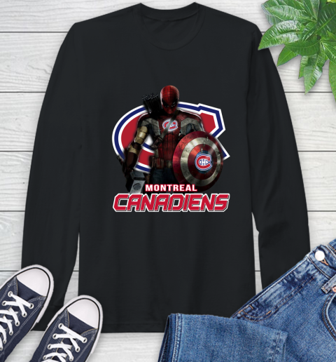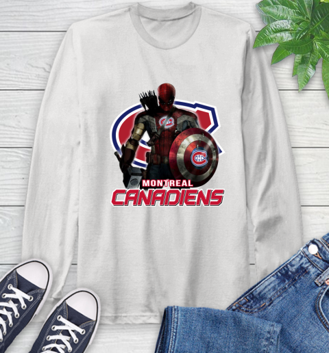 NHL Captain America Thor Spider Man Hawkeye Avengers Endgame Hockey Montreal Canadiens Long Sleeve T-Shirt