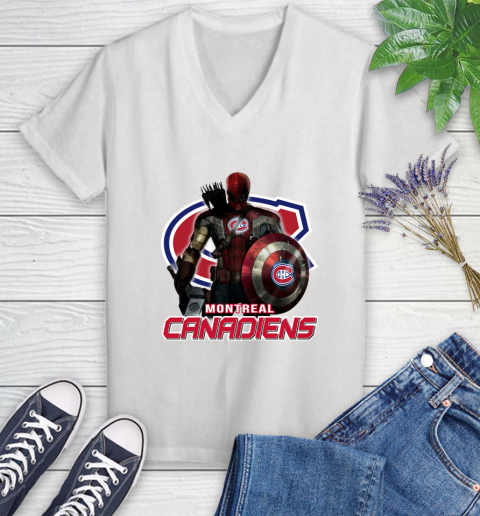 NHL Captain America Thor Spider Man Hawkeye Avengers Endgame Hockey Montreal Canadiens Women’s V-Neck T-Shirt