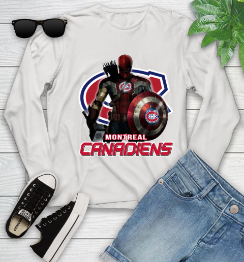 NHL Captain America Thor Spider Man Hawkeye Avengers Endgame Hockey Montreal Canadiens Youth Long Sleeve