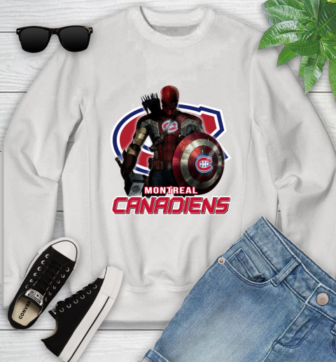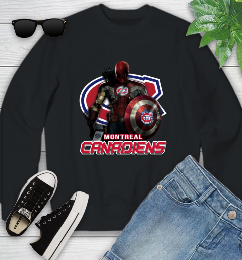 NHL Captain America Thor Spider Man Hawkeye Avengers Endgame Hockey Montreal Canadiens Youth Sweatshirt