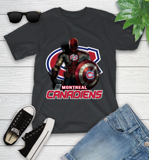 NHL Captain America Thor Spider Man Hawkeye Avengers Endgame Hockey Montreal Canadiens Youth T-Shirt