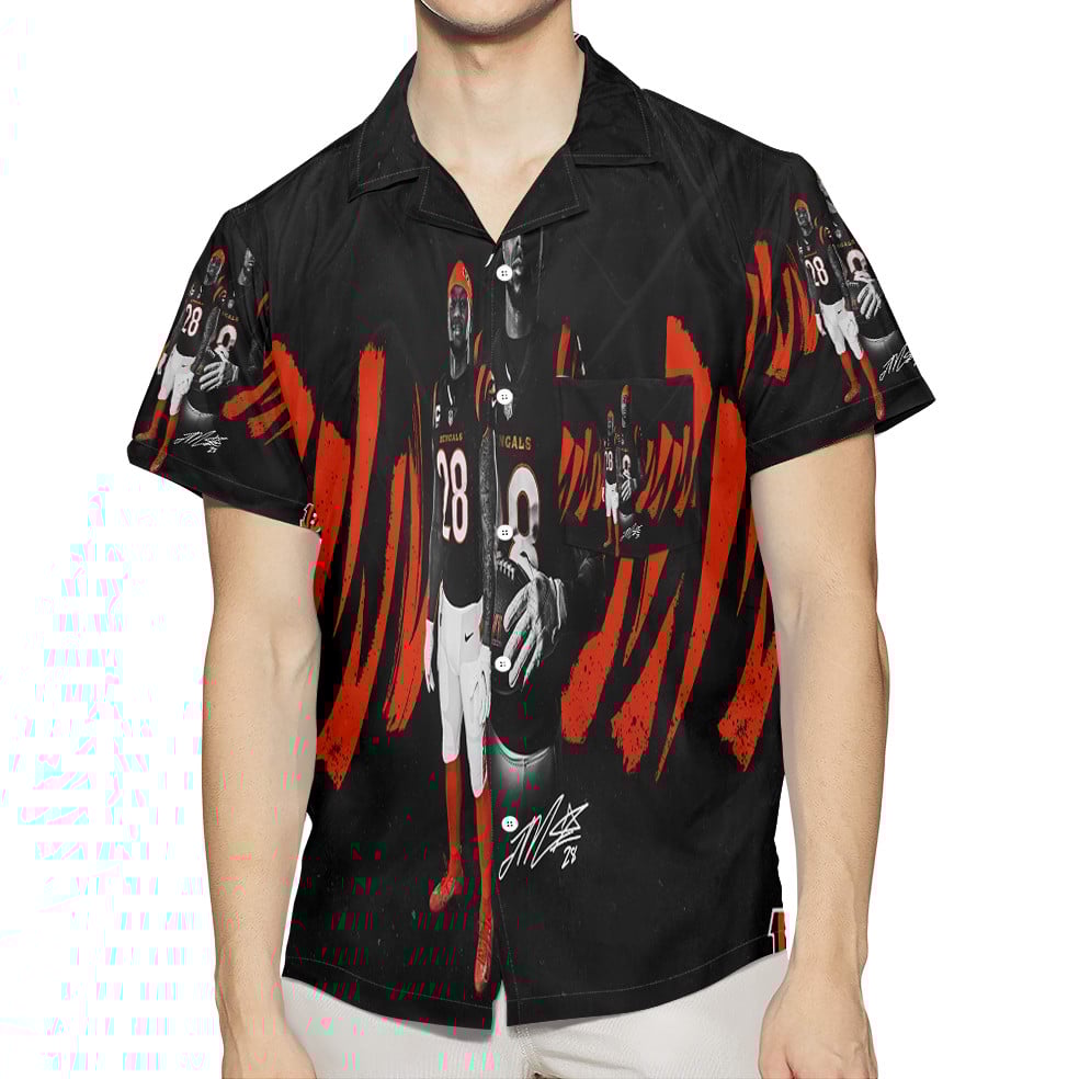 Cincinnati Bengals Player No28 3D All Over Print Summer Beach Hawaiian Shirt With Pocket
