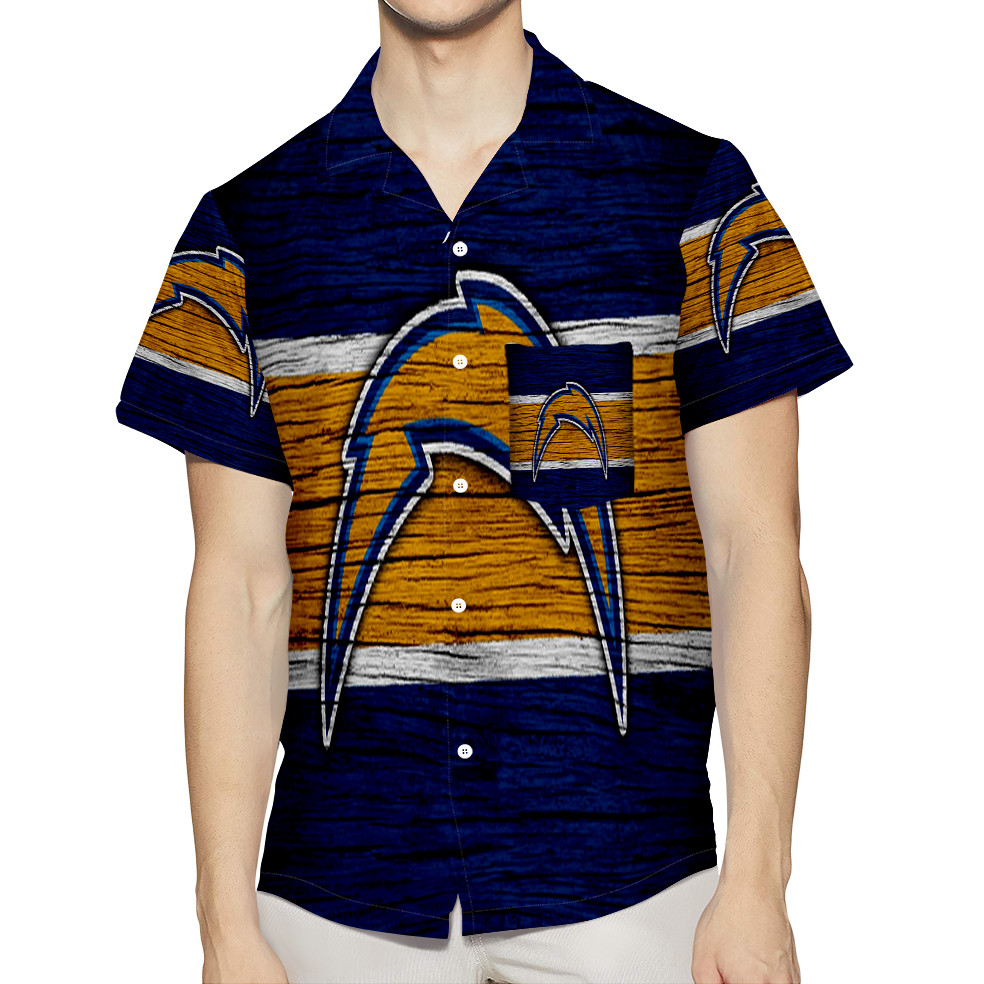 Los Angeles Chargers Emblem Wooden v28 3D All Over Print Summer Beach Hawaiian Shirt With Pocket
