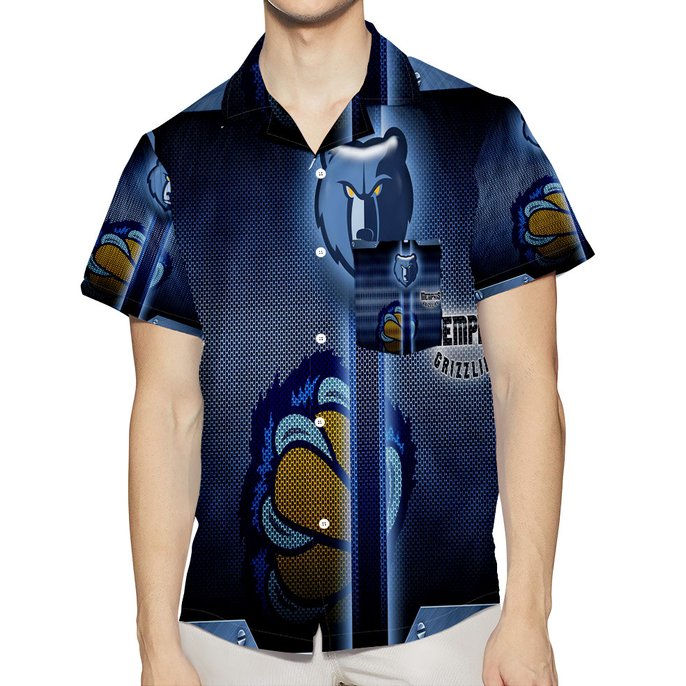 Memphis Grizzlies Emblem Texture Metal 3D All Over Print Summer Beach Hawaiian Shirt With Pocket