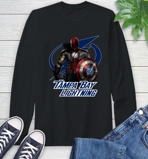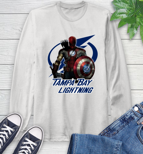 NHL Captain America Thor Spider Man Hawkeye Avengers Endgame Hockey Tampa Bay Lightning Long Sleeve T-Shirt