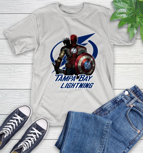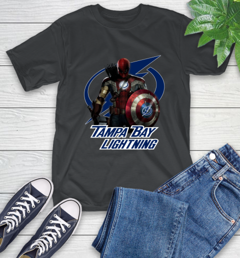NHL Captain America Thor Spider Man Hawkeye Avengers Endgame Hockey Tampa Bay Lightning T-Shirt