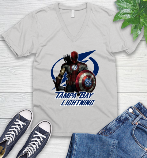 NHL Captain America Thor Spider Man Hawkeye Avengers Endgame Hockey Tampa Bay Lightning V-Neck T-Shirt
