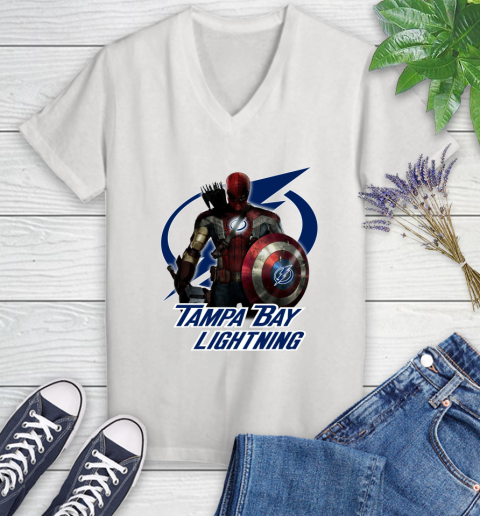 NHL Captain America Thor Spider Man Hawkeye Avengers Endgame Hockey Tampa Bay Lightning Women’s V-Neck T-Shirt