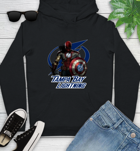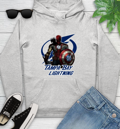 NHL Captain America Thor Spider Man Hawkeye Avengers Endgame Hockey Tampa Bay Lightning Youth Hoodie