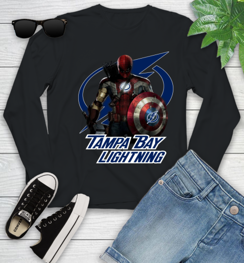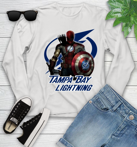 NHL Captain America Thor Spider Man Hawkeye Avengers Endgame Hockey Tampa Bay Lightning Youth Long Sleeve