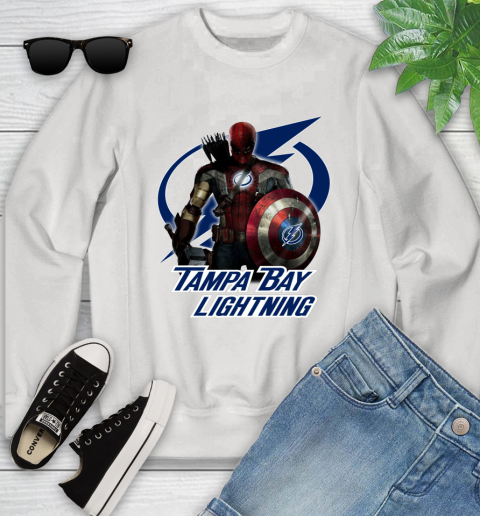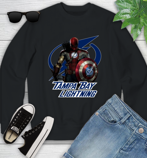 NHL Captain America Thor Spider Man Hawkeye Avengers Endgame Hockey Tampa Bay Lightning Youth Sweatshirt