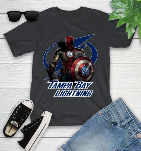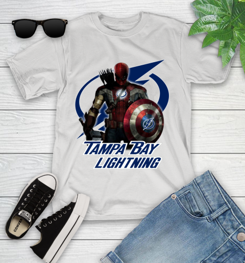 NHL Captain America Thor Spider Man Hawkeye Avengers Endgame Hockey Tampa Bay Lightning Youth T-Shirt