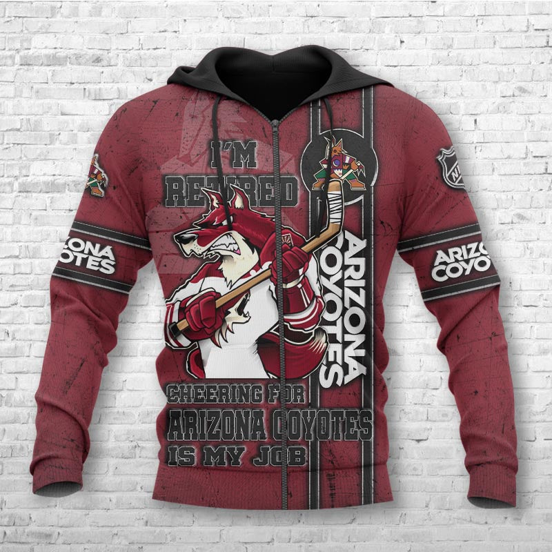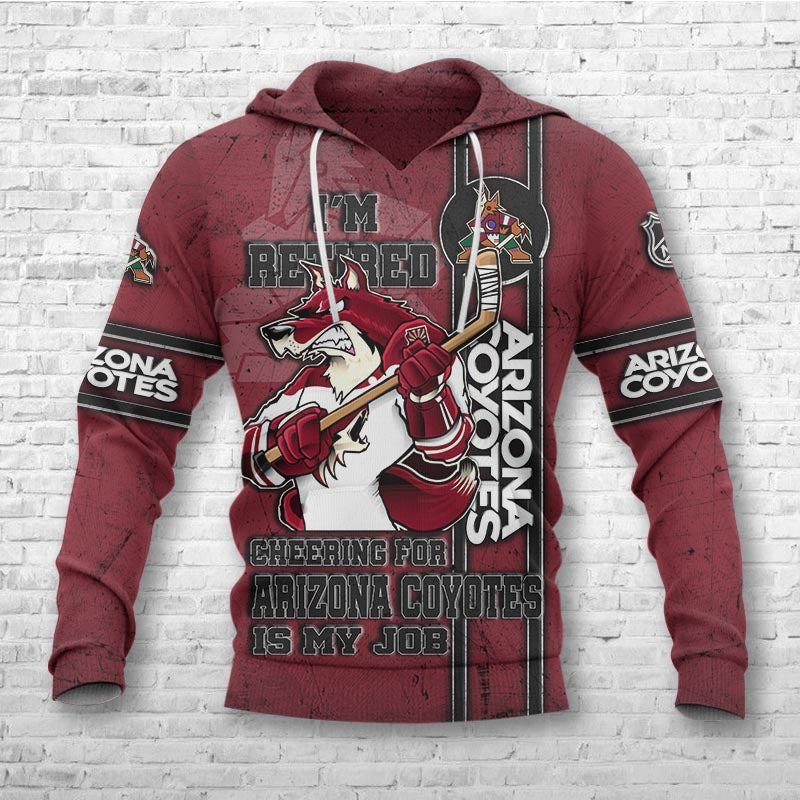 Arizona Coyotes Hoodies I’m Retired NHL for Men and Women are perfect for sports fans who want to show their support for their favourite team. They are a great way to express your passion and style while keeping you warm during cold-weather games. The 3D design gives the hoodie dimension, adding an extra layer of depth and detail that is sure to impress friends and family alike.