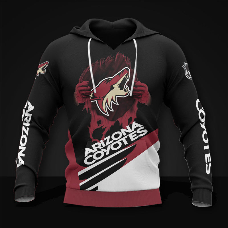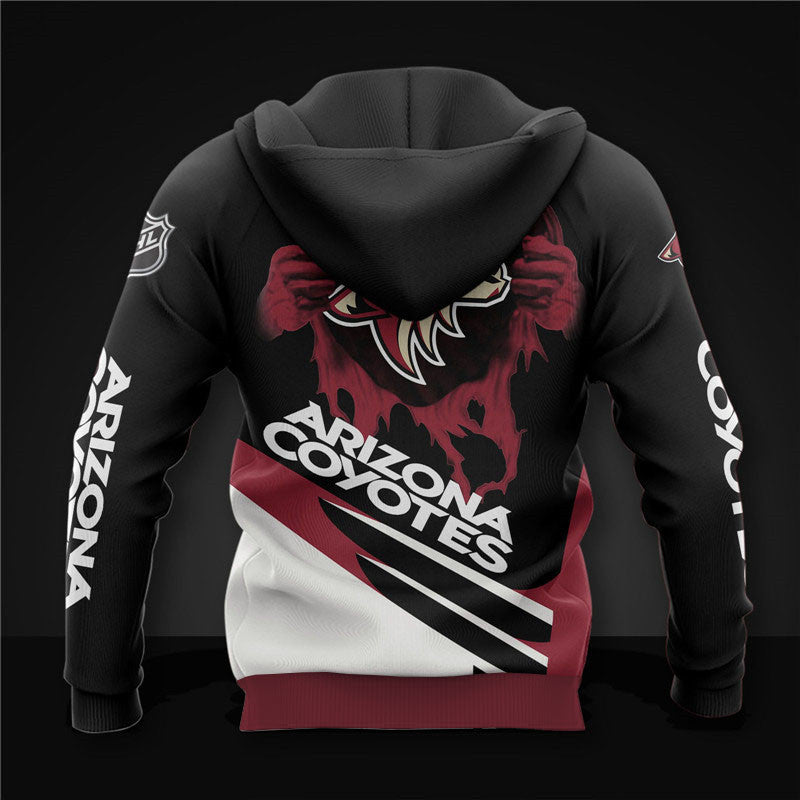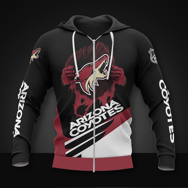 Black Arizona Coyotes Zipper Hoodies, Pullover Print 3D NHL