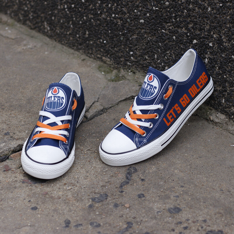 Edmonton Oilers Limited Print NHL Ice Hockey Fans Low Top Canvas Shoes Sport Sneakers T-DH92L