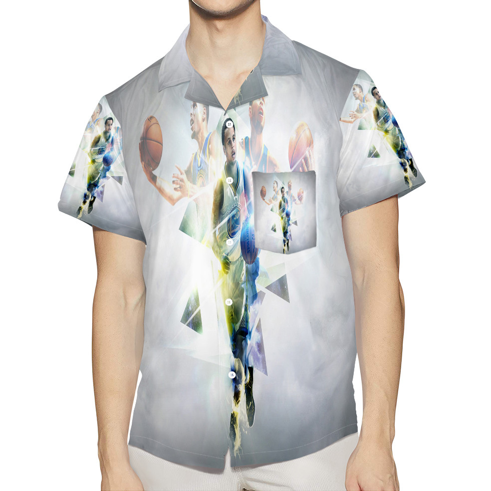 Golden State Warriors Stephen Curry 30 Texture9 3D All Over Print Summer Beach Hawaiian Shirt With Pocket