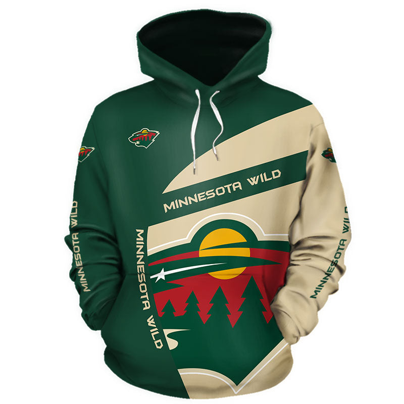 Custom NHL 3d hoodies also make great gifts for any fan or collector of ice hockey memorabilia. Whether it’s showing off a favourite player or just supporting your favourite team, these unique designs will help you stand out from the crowd. Show off your pride in the sport with Lastest Minnesota Wild Hoodies 3D With Hooded Long Sleeve NHL for Men and Women!