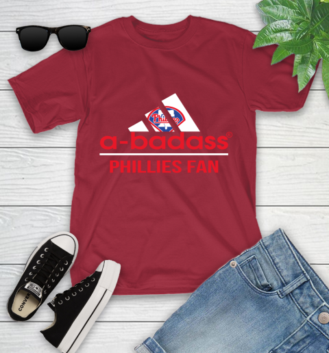 MLB A Badass Philadelphia Phillies Fan Adidas Baseball Sports Youth T-Shirt