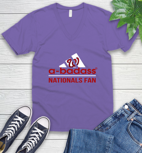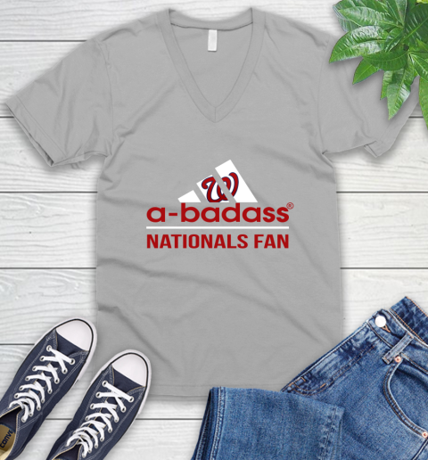 MLB A Badass Washington Nationals Fan Adidas Baseball Sports V-Neck T-Shirt