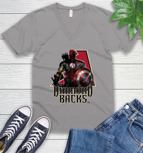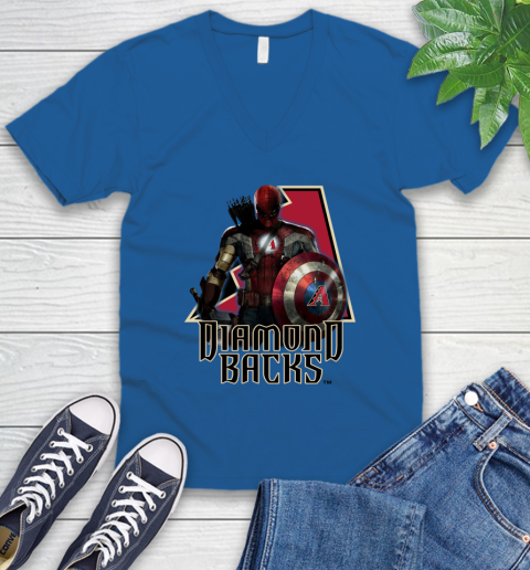 MLB Captain America Thor Spider Man Hawkeye Avengers Endgame Baseball Arizona Diamondbacks V-Neck T-Shirt
