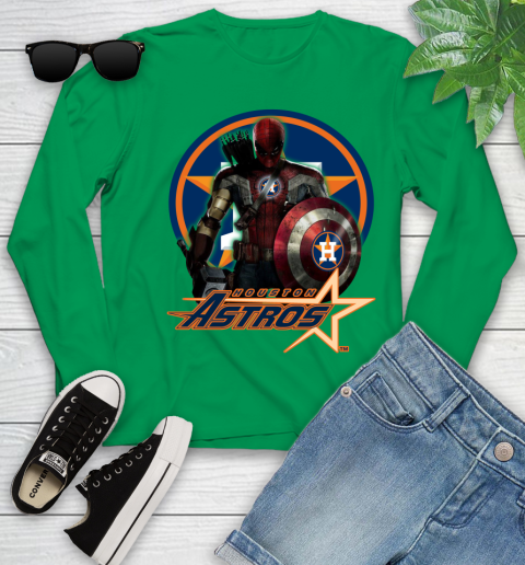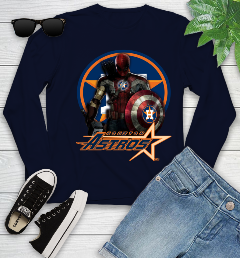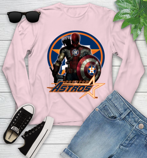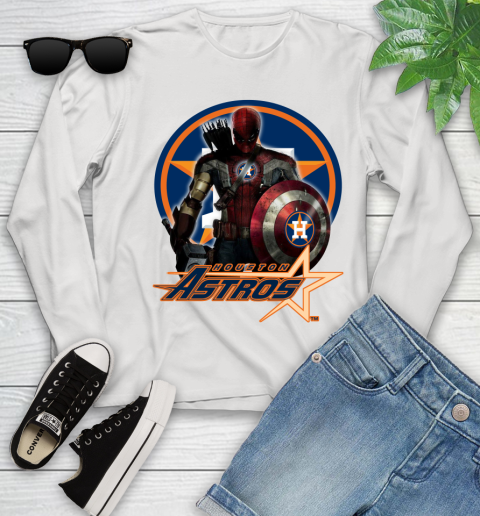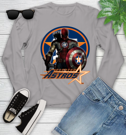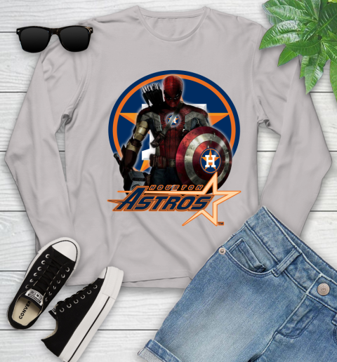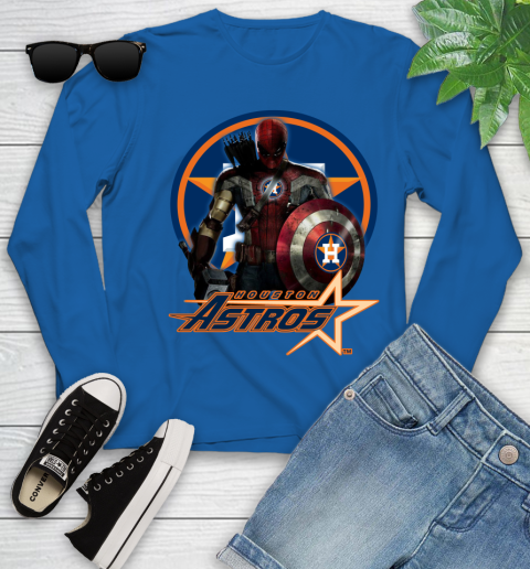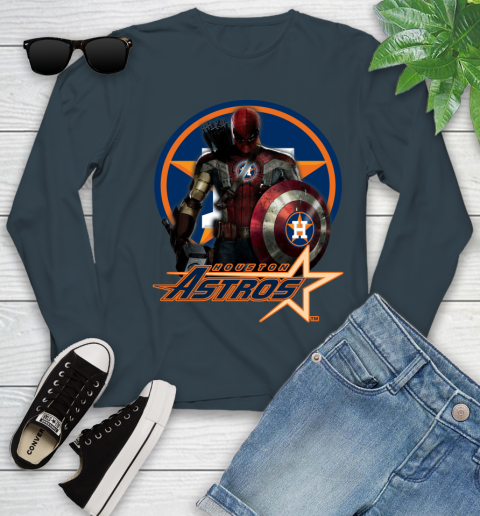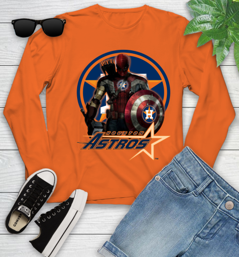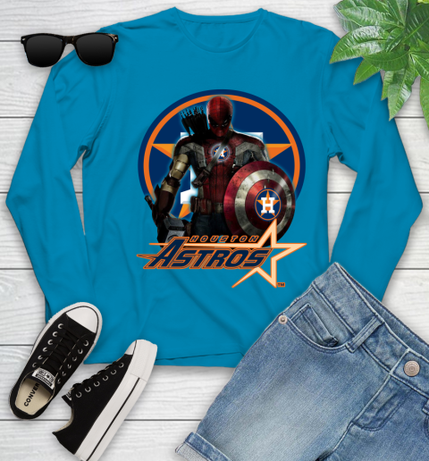 MLB Captain America Thor Spider Man Hawkeye Avengers Endgame Baseball Houston Astros Youth Long Sleeve