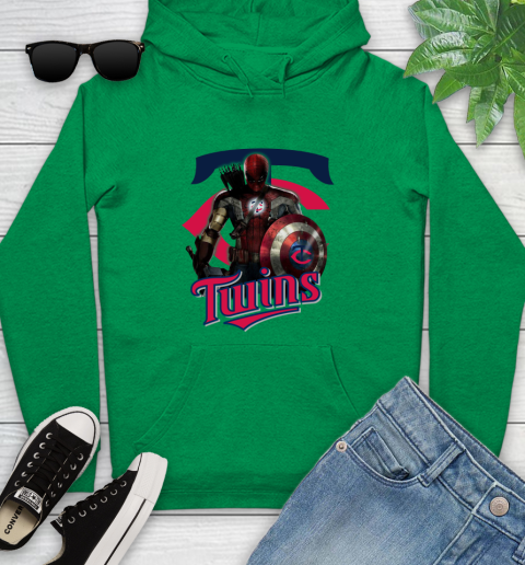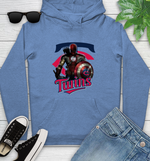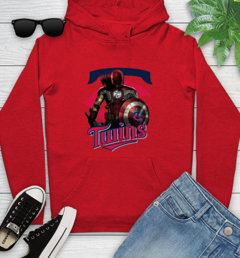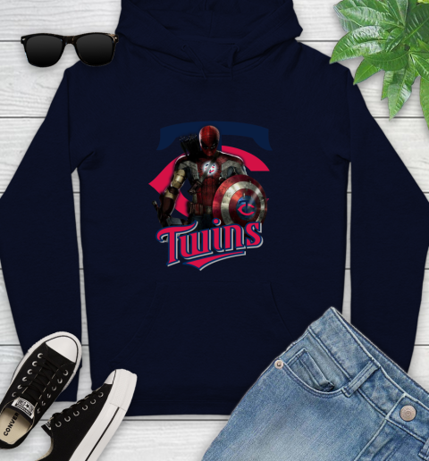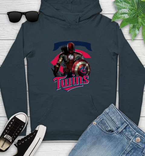 MLB Captain America Thor Spider Man Hawkeye Avengers Endgame Baseball Minnesota Twins Youth Hoodie