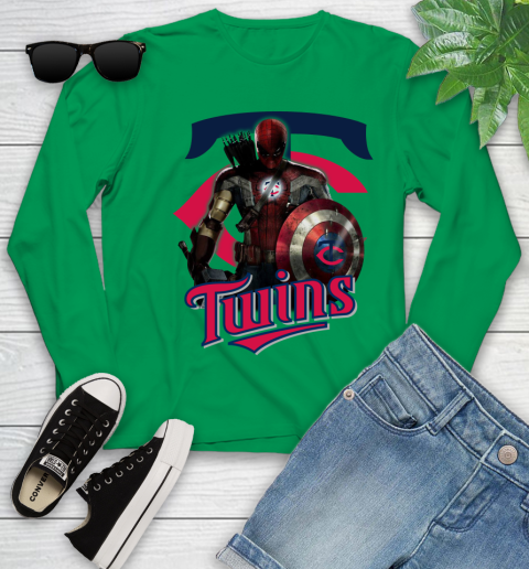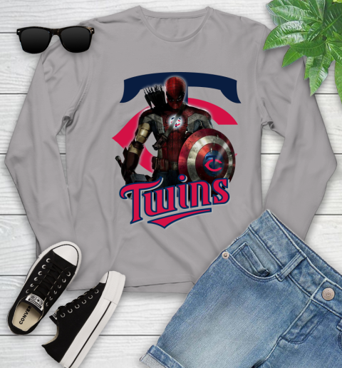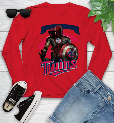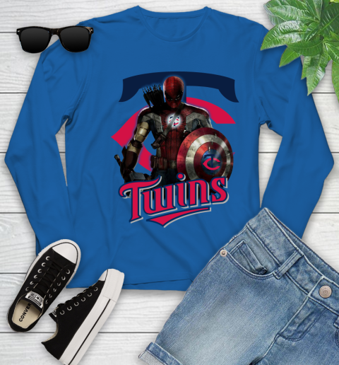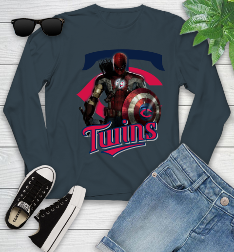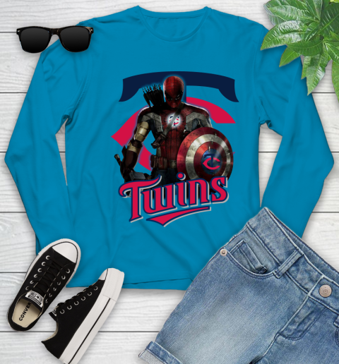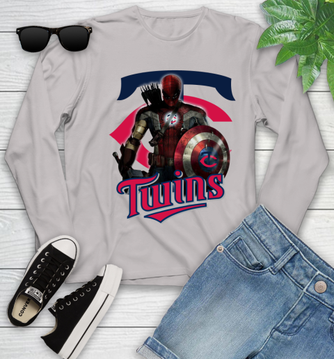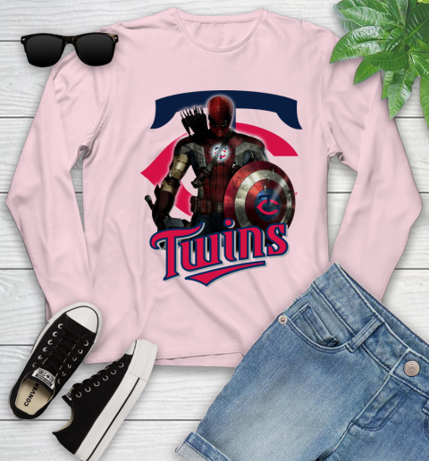 MLB Captain America Thor Spider Man Hawkeye Avengers Endgame Baseball Minnesota Twins Youth Long Sleeve