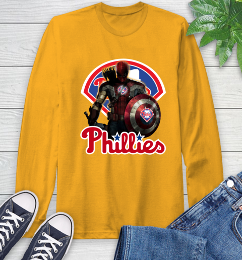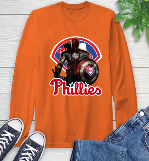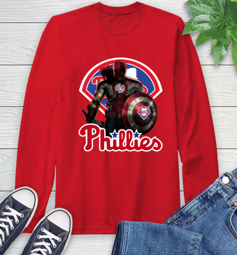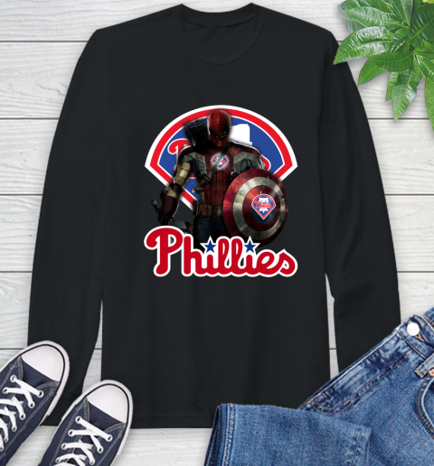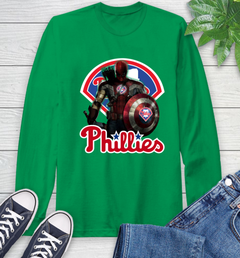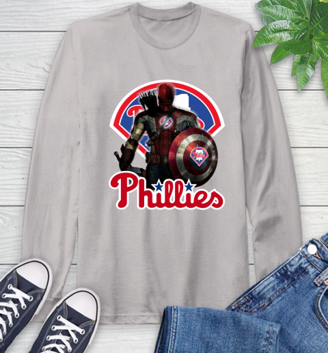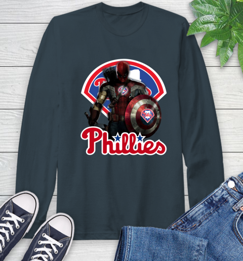 MLB Captain America Thor Spider Man Hawkeye Avengers Endgame Baseball Philadelphia Phillies Long Sleeve T-Shirt