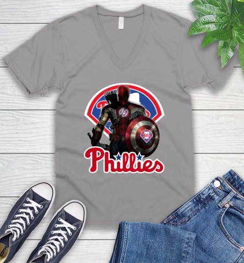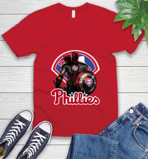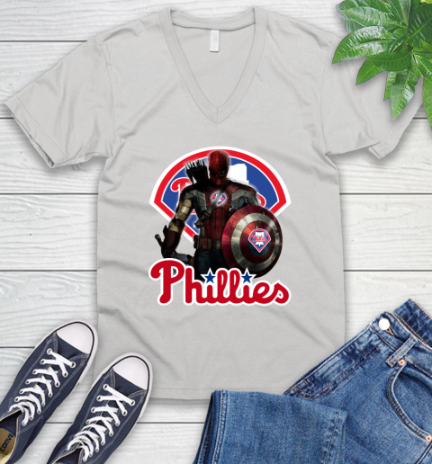 MLB Captain America Thor Spider Man Hawkeye Avengers Endgame Baseball Philadelphia Phillies V-Neck T-Shirt
