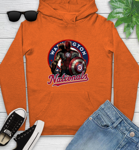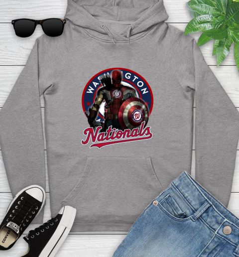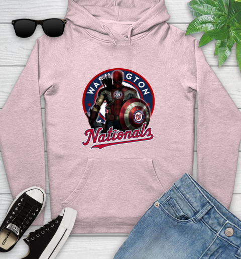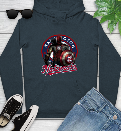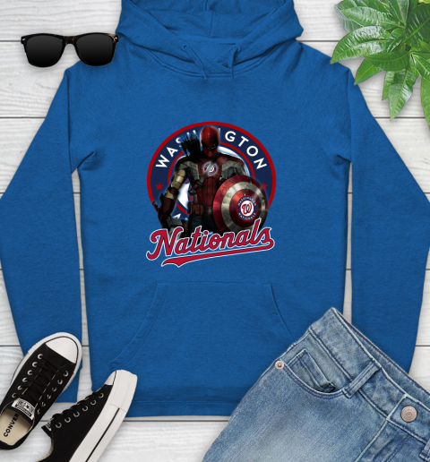 MLB Captain America Thor Spider Man Hawkeye Avengers Endgame Baseball Washington Nationals Youth Hoodie