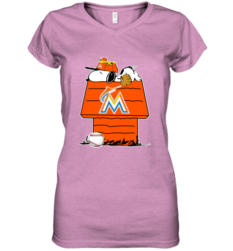 MLB Miami Marlins Snoopy Woodstock The Peanuts Movie Baseball T Shirt
