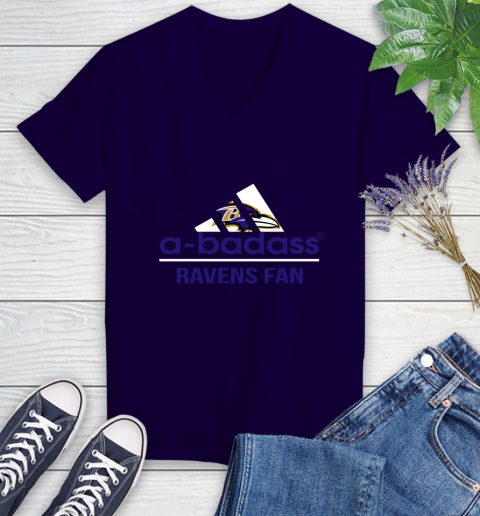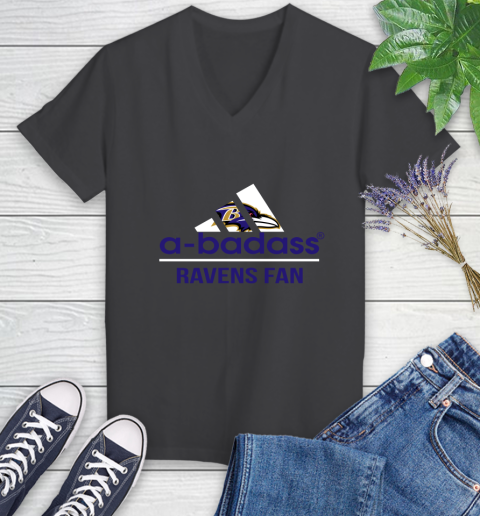 NFL A Badass Baltimore Ravens Fan Adidas Football Sports Women’s V-Neck T-Shirt