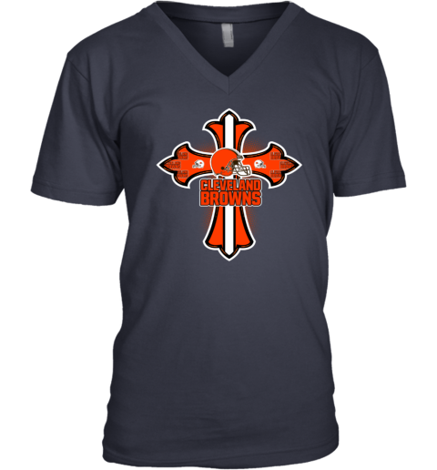 NFL Blue Crusader Cross Cleveland Browns V-Neck T-Shirt