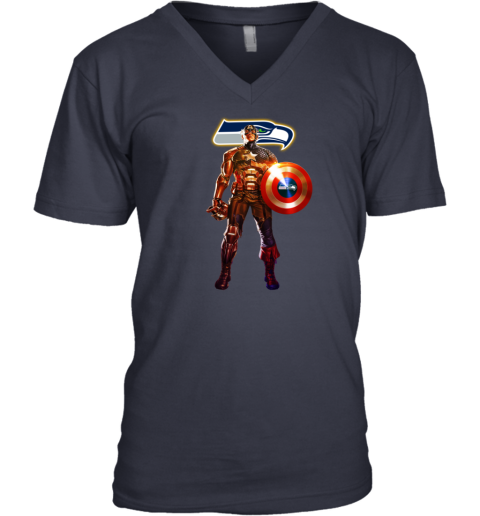 NFL Captain America Seattle Seahawks V-Neck T-Shirt