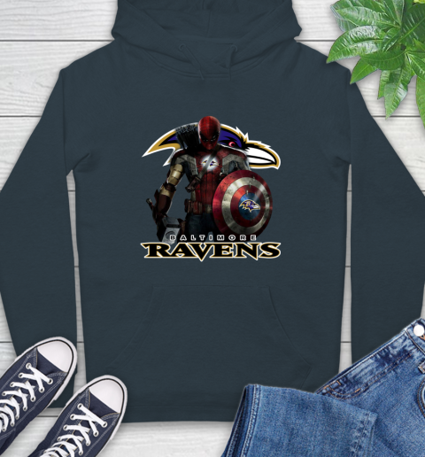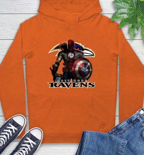 NFL Captain America Thor Spider Man Hawkeye Avengers Endgame Football Baltimore Ravens Hoodie