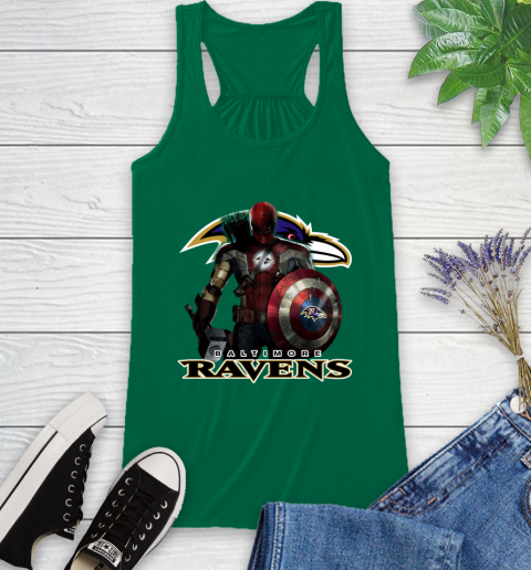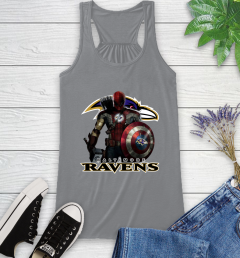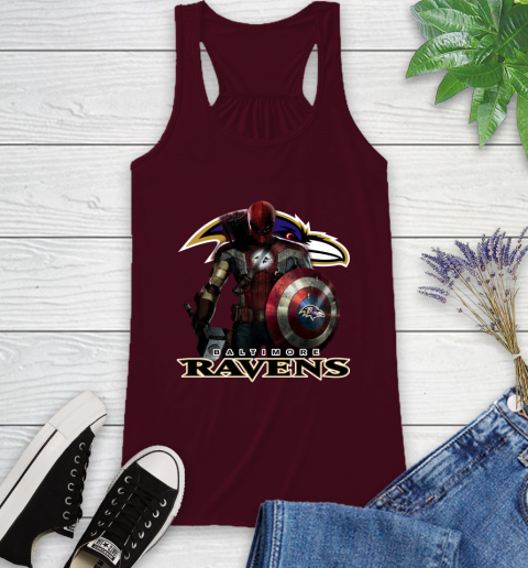 NFL Captain America Thor Spider Man Hawkeye Avengers Endgame Football Baltimore Ravens Racerback Tank