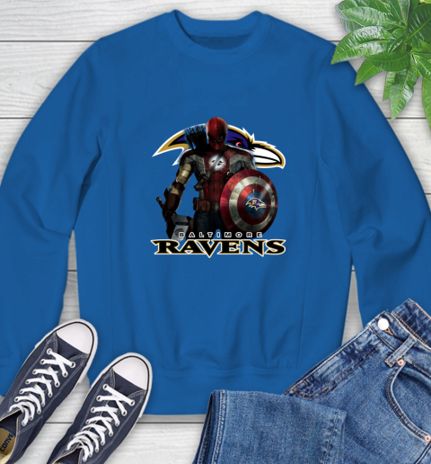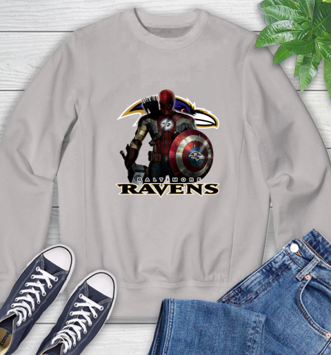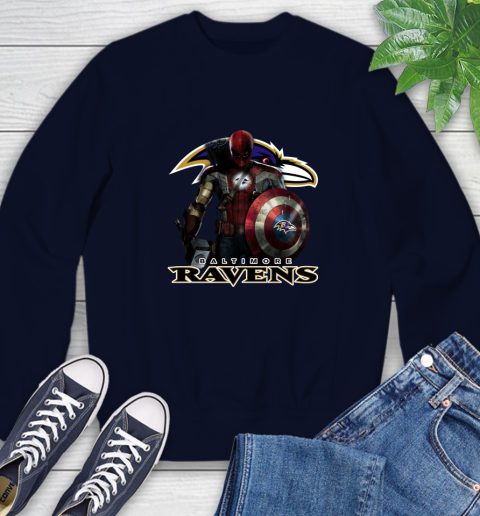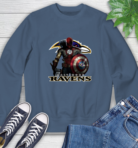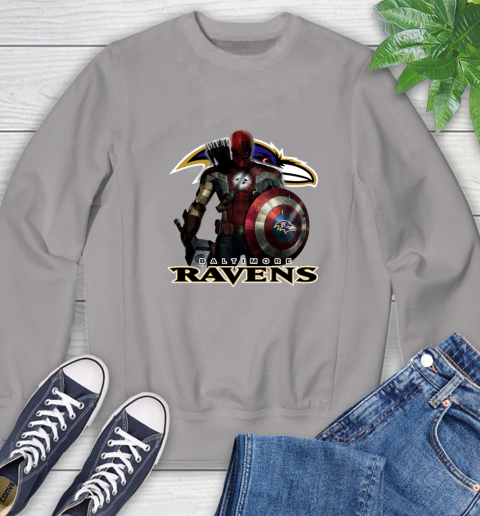 NFL Captain America Thor Spider Man Hawkeye Avengers Endgame Football Baltimore Ravens Sweatshirt