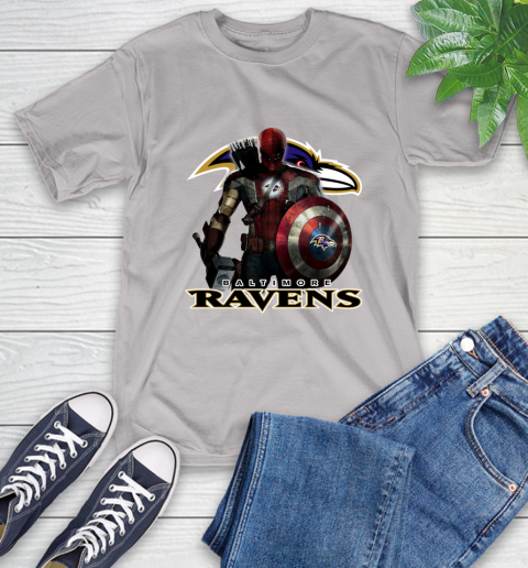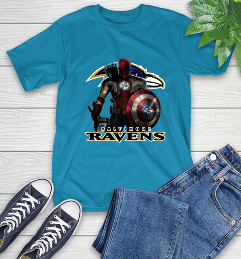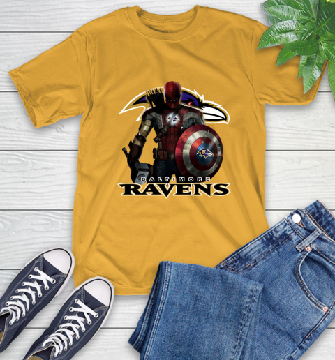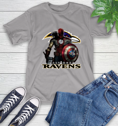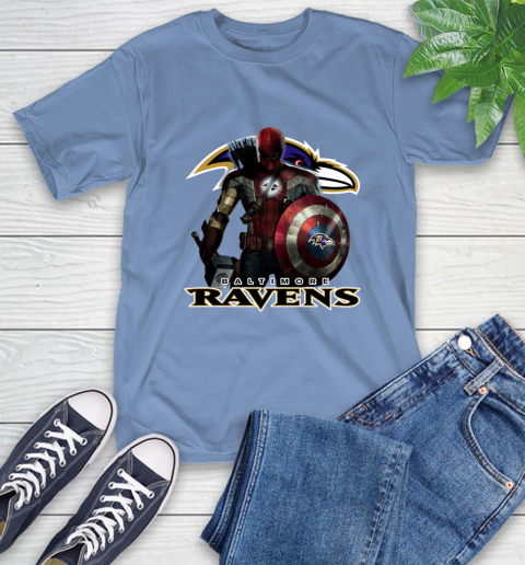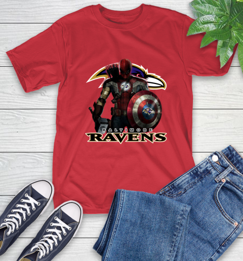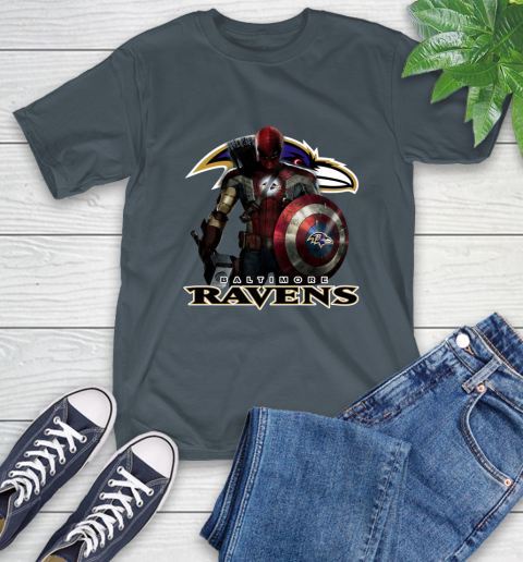 NFL Captain America Thor Spider Man Hawkeye Avengers Endgame Football Baltimore Ravens T-Shirt