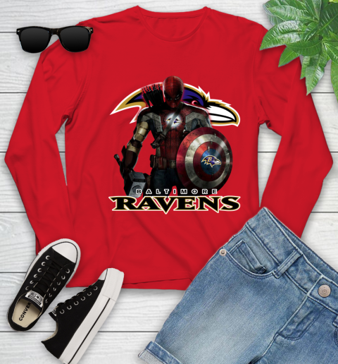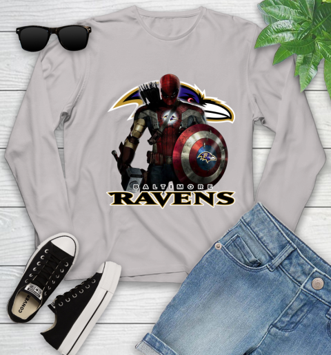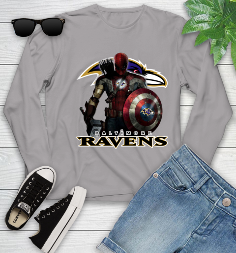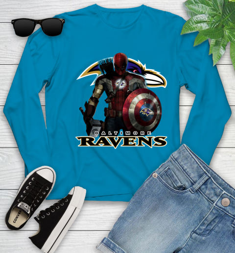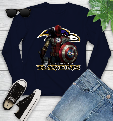 NFL Captain America Thor Spider Man Hawkeye Avengers Endgame Football Baltimore Ravens Youth Long Sleeve
