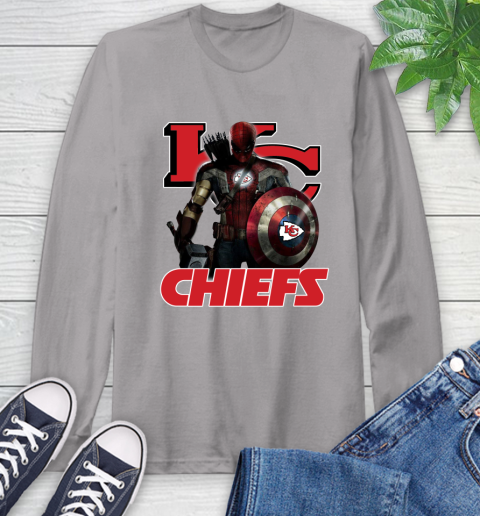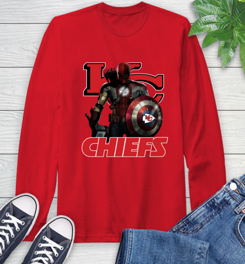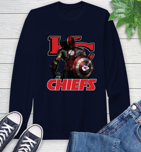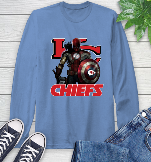 NFL Captain America Thor Spider Man Hawkeye Avengers Endgame Football Kansas City Chiefs Long Sleeve T-Shirt