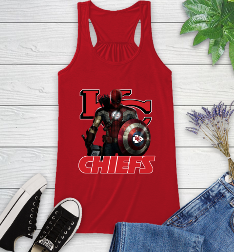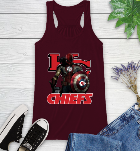 NFL Captain America Thor Spider Man Hawkeye Avengers Endgame Football Kansas City Chiefs Racerback Tank