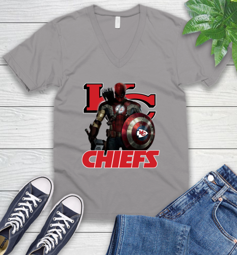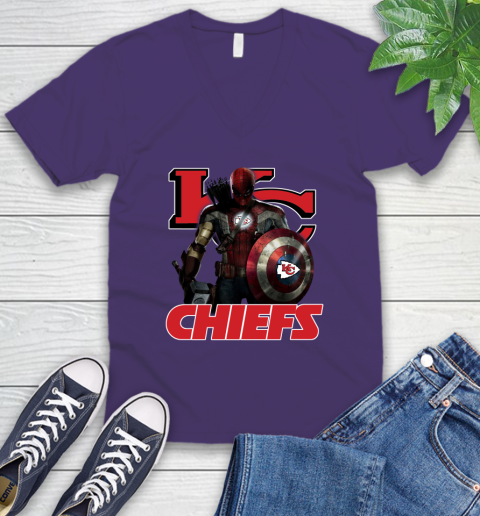 NFL Captain America Thor Spider Man Hawkeye Avengers Endgame Football Kansas City Chiefs V-Neck T-Shirt