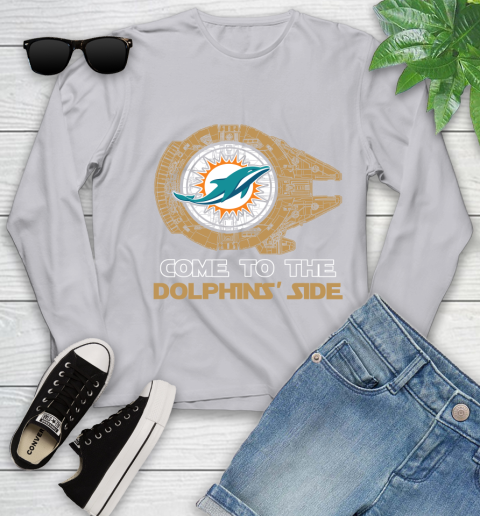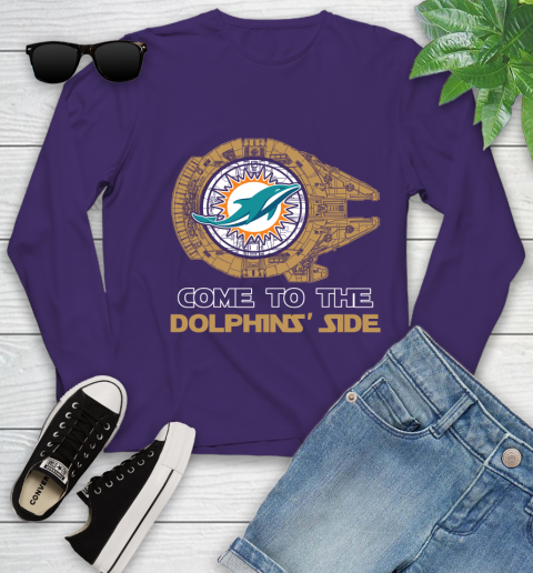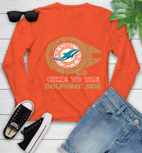 Wear NFL Come To The Miami Dolphins Wars Football Sports Youth Long Sleeve to the game, to a Star Wars movie marathon, or just out and about to show off your dual fandom. They’re a fun, fantastic way to showcase your love for both the NFL and Star Wars. May the force be with your team!